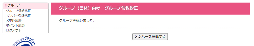 グループ(団体)向け グループ登録